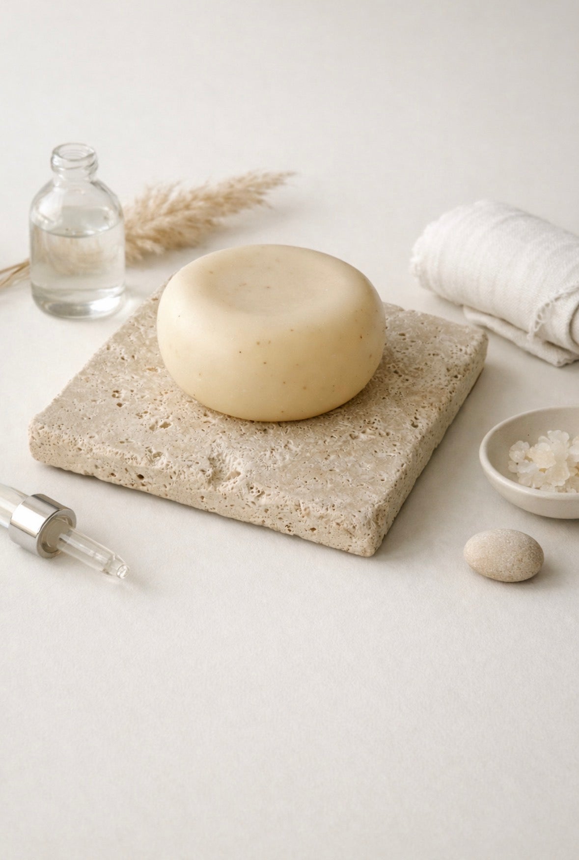 Solid travertine. Botonicial facial soap.
